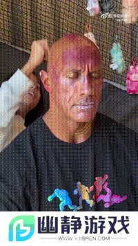 其9岁女儿茉莉与6岁女儿蒂安娜为其进行“创意装扮”。女孩儿们把blingbling的化妆品涂满强森全头,强森一脸生无可恋但宠溺的放任女儿化妆