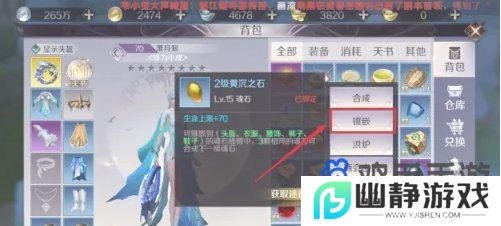 5、最后我们就可以对合成的魂石,点击右侧的镶嵌来使用了。