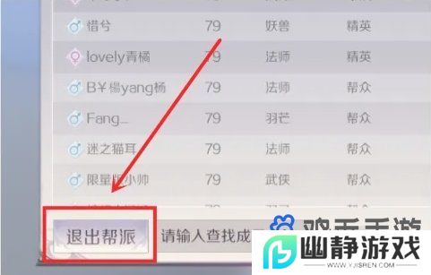 答:帮派-成员-退出帮派-点击确定即可退出帮派