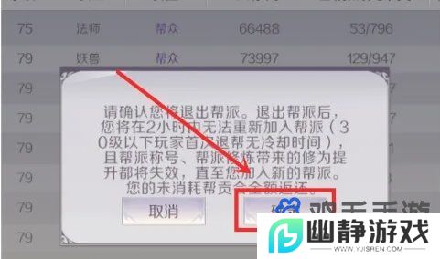 ps:退出帮派后,2小时内无法重新加入帮派,30级以下玩家首次推出帮派无冷却时间。