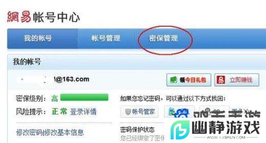 1、首先我们进入网易账号中心,点击密保管理选项;