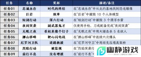 单人战役任务相关奖杯,不用担心错过。完成第五个战役任务【无眠之夜】和第六个战役任务【挪山移峰】后跳杯。