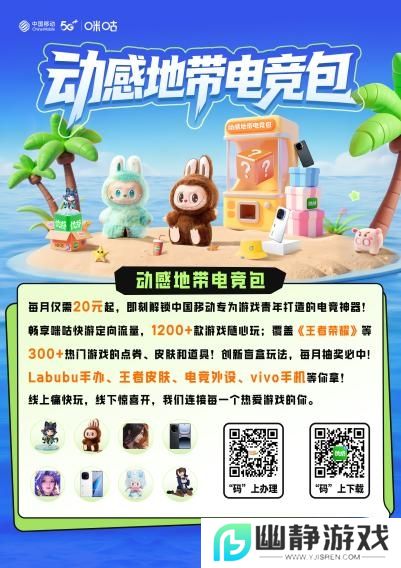 每月仅需20元起,即刻解锁中国移动专为游戏青年打造的电竞神器!畅享咪咕快游定向流量,1200+款游戏随心玩;覆盖《王者荣耀》等300+热门游戏的点券、皮肤和道具!创新盲盒玩法,每月抽奖必中——Labubu手办、王者皮肤、电竞外设、vivo手机等你拿!办理电竞包参加比赛的同学更可以享受双倍奖金权益!