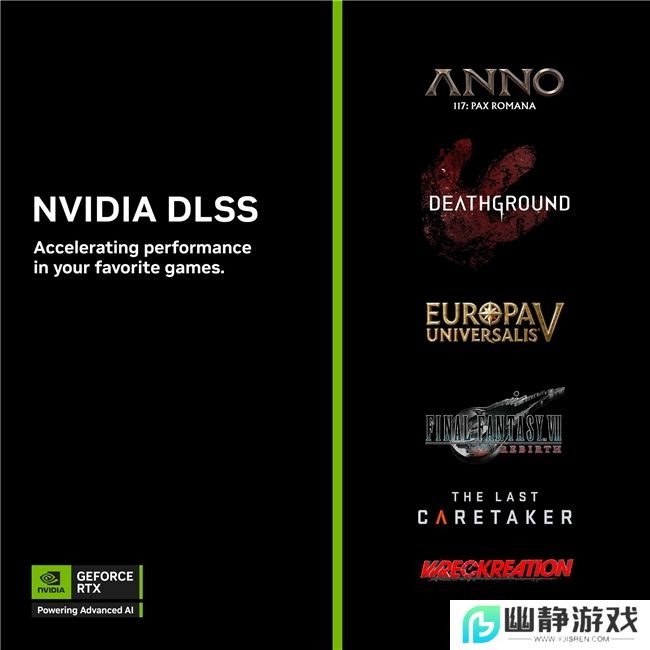 本周《最终幻想 VII 重生》(FINAL FANTASY VII REBIRTH)支持DLSS 4多帧生成。Deathground 发布并支持 DLSS 4,The Last Caretaker 本周首发并支持让性能倍增的DLSS 4技术。《欧陆风云 V》(Europa Universalis V)于11月4日发布并支持 DLSS 超分辨率,《破坏创造王》(Wreckreation)现已发布并支持 DLSS 超分辨率。
